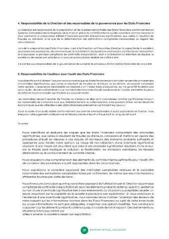 Centre Urbain Nord 1003 Tunis, Tunisie Les Berges du Lac 1053 Tunis 4. Responsabilités de la Direction et des responsables de la gouvernance pour les Etats Financiers