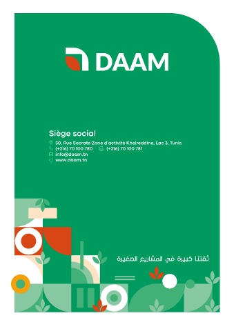 Siège social 30, Rue Socrate Zone d’activité Kheireddine, Lac 3, Tunis (+216) 70 100 780 (+216) 70 100 781 info@daam.tn www.daam.tn