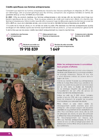 de Tunisie à l’intention des femmes entrepreneures. Le prêt qu’elle a reçu, d’un montant de 5 000 dinars tunisiens, l’a